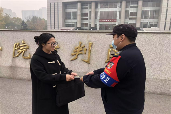 11月3日,律師李某不小心把自己的律師證丟失在了中院大門外,特保隊員付英祺撿到律師證件后,第一時間查找了李某所在律師事務(wù)所電話,并迅速聯(lián)系到了李律師。隨后,李律師匆匆來到中院,付英祺仔細(xì)核對身份信息無誤后,將律師證完好無損地交還。接過失而復(fù)得的證件,李律師連連道謝,對特保隊員認(rèn)真負(fù)責(zé)、高效務(wù)實的服務(wù)態(tài)度給予了高度贊揚。