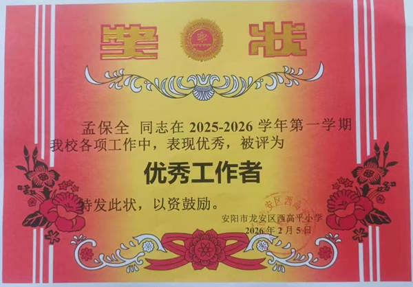 他深耕崗位、用心履職,對校園每一處設(shè)施的狀況都了然于心,被校長親切稱贊為校園 “萬能工”;他溫柔以待、呵護(hù)學(xué)生,雨天為孩子撐傘引路,課間為學(xué)生耐心答疑,還常主動(dòng)幫忙修理文具,是學(xué)生眼中和藹可親的長輩。日復(fù)一日,年復(fù)一年,孟保全在平凡的保安崗位上,用點(diǎn)滴行動(dòng)詮釋著責(zé)任與擔(dān)當(dāng),用堅(jiān)守付出書寫著愛崗敬業(yè)的答卷,成為全校師生學(xué)習(xí)的鮮活榜樣。