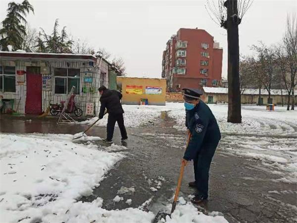 2月25日,安陽大地迎來了2021年的第一場雪,恰逢又是小學(xué)開學(xué)報到第一天,人防三大隊駐校園保安隊員們積極主動開展掃雪工作,確保廣大師生出行安全。
