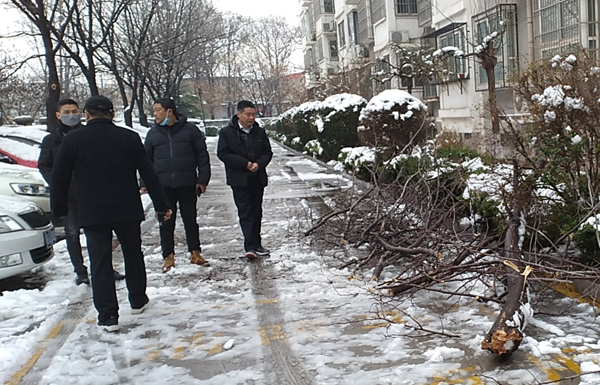 當(dāng)日一大早,申春林就帶領(lǐng)物業(yè)公司辦公室、應(yīng)急辦的人員深入到各項(xiàng)目單位,查看雪后災(zāi)情。在致中苑小區(qū)、電業(yè)局頤欣園小區(qū),申春林看到有樹(shù)枝被雪壓斷,他指出要及時(shí)查清受損情況,清理積雪現(xiàn)場(chǎng),確保居民正常出行。在蔬菜基地,有兩個(gè)大棚遭被雪壓塌陷,有不同程度損壞,但均無(wú)人員傷亡事故。目前鼎誠(chéng)物業(yè)員工正在積極修復(fù)大棚,減少損失。