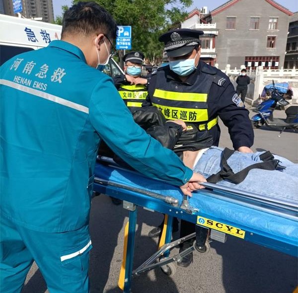 上午8時40分許,巡防隊(duì)員王一男、李帥、梁子力等11名隊(duì)員巡邏至文峰十二府旁,遇到一起交通事故,導(dǎo)致現(xiàn)場交通堵塞。隊(duì)員們迅速把車輛有序??吭诼放裕⑸锨安榭辞闆r,只見一女子電動車翻在一旁,人倒在地上呻吟不止。經(jīng)了解得知,騎電動車的李女士為了避讓轉(zhuǎn)彎的汽車側(cè)翻在地,并摔傷了腰部,隊(duì)員們立即幫助李女士撥打了120和122事故科電話,并聯(lián)系了李女士愛人。隨后一邊疏散圍觀群眾,一邊指揮車輛有序通行,確保道路安全暢通。待120與交警到來后,隊(duì)員們協(xié)助醫(yī)護(hù)人員把傷者李女士抬上救護(hù)車,才離開現(xiàn)場繼續(xù)巡邏工作。