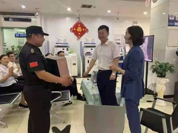5月18日下午,中原銀行安陽分行零售部總經理王國賓和副總經理暴潔,專程到老槐樹支行慰問并表揚人防四大隊派駐這里的保安隊員許文革,對許文革盡職盡責的工作態(tài)度給予高度贊揚。