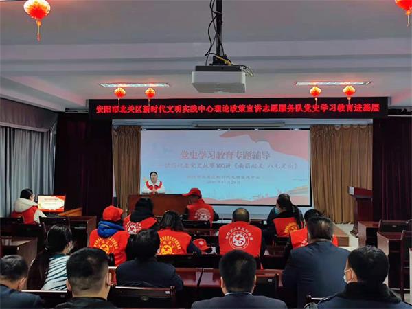 為引導全區(qū)黨員干部從百年黨史中感悟思想偉力,汲取奮進力量,11月29日上午,公司參加由北關區(qū)文明辦在安陽市地震局五樓召開《安陽市北關區(qū)新時代文明實踐中心理論政策宣講志愿服務隊黨史學習教育進基層活動》,北關區(qū)文明辦副主任齊書蘭進行宣講。