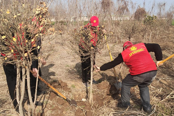 活動現(xiàn)場,大家分工協(xié)作,干勁十足,手拿水桶,肩扛鐵鍬,三五人一組,揮鍬鏟土、扶樹正苗、澆水灌溉,每個環(huán)節(jié)銜接有序、認(rèn)真細(xì)致,大家熱情高漲,忙的不亦樂乎,幾小時熱火朝天的勞動后,看著生機(jī)勃勃的樹苗,讓大家倍感充實和愉悅。