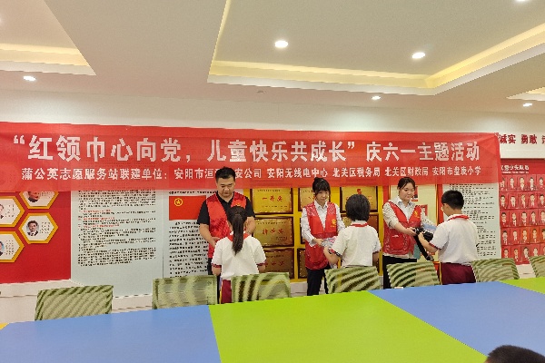 為了迎接“六一”兒童節(jié)的到來,營造良好的未成年成長環(huán)境,讓孩子們感受到社會溫暖,茁壯成長,度過一個開心、快樂的兒童節(jié)。5月29日,公司聯(lián)合蒲公英志愿服務(wù)站在安陽市盤庚小學開展了“紅領(lǐng)巾心向黨,兒童快樂共成長”的志愿服務(wù)活動。